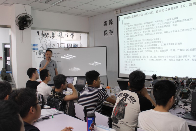 本次現(xiàn)場(chǎng)招聘會(huì)由創(chuàng)控教育自動(dòng)化培訓(xùn)中心負(fù)責(zé)人王老師主持,水發(fā)智慧人事部王經(jīng)理向?qū)W員們?cè)敿?xì)介紹了公司概況及主營(yíng)業(yè)務(wù),交付部技術(shù)負(fù)責(zé)人魏總向?qū)W員們介紹了項(xiàng)目情況及任職要求,學(xué)員們也紛紛向企業(yè)提出各個(gè)自己關(guān)心的問(wèn)題,企業(yè)一一做了仔細(xì)的解答,整個(gè)招聘會(huì)現(xiàn)場(chǎng)氣氛熱烈而融洽!
